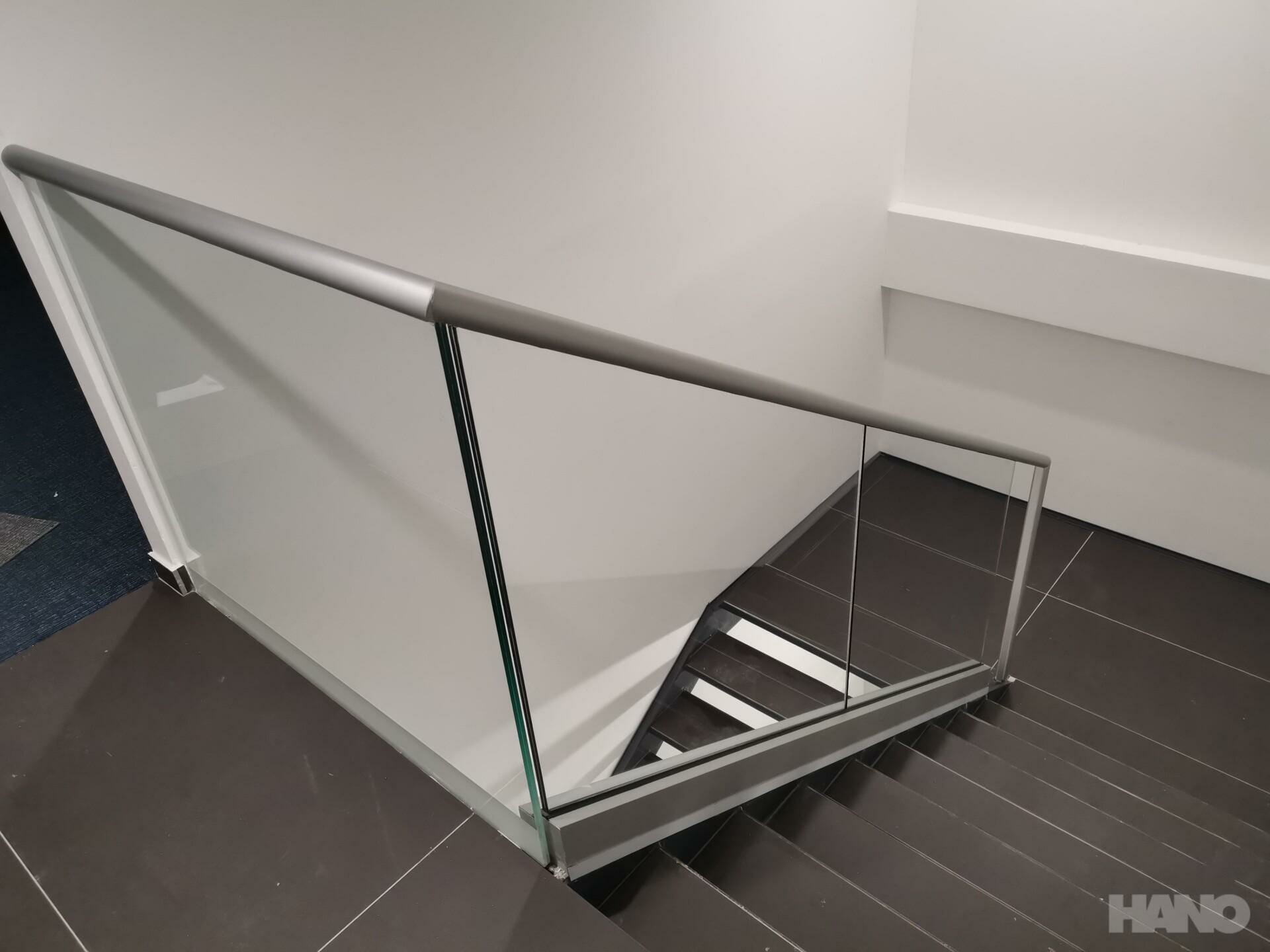 Izrada i ugradnja unutrašnje staklene ograde sa inoxnim spider nosačima i podnim nosačem Alumil M8200